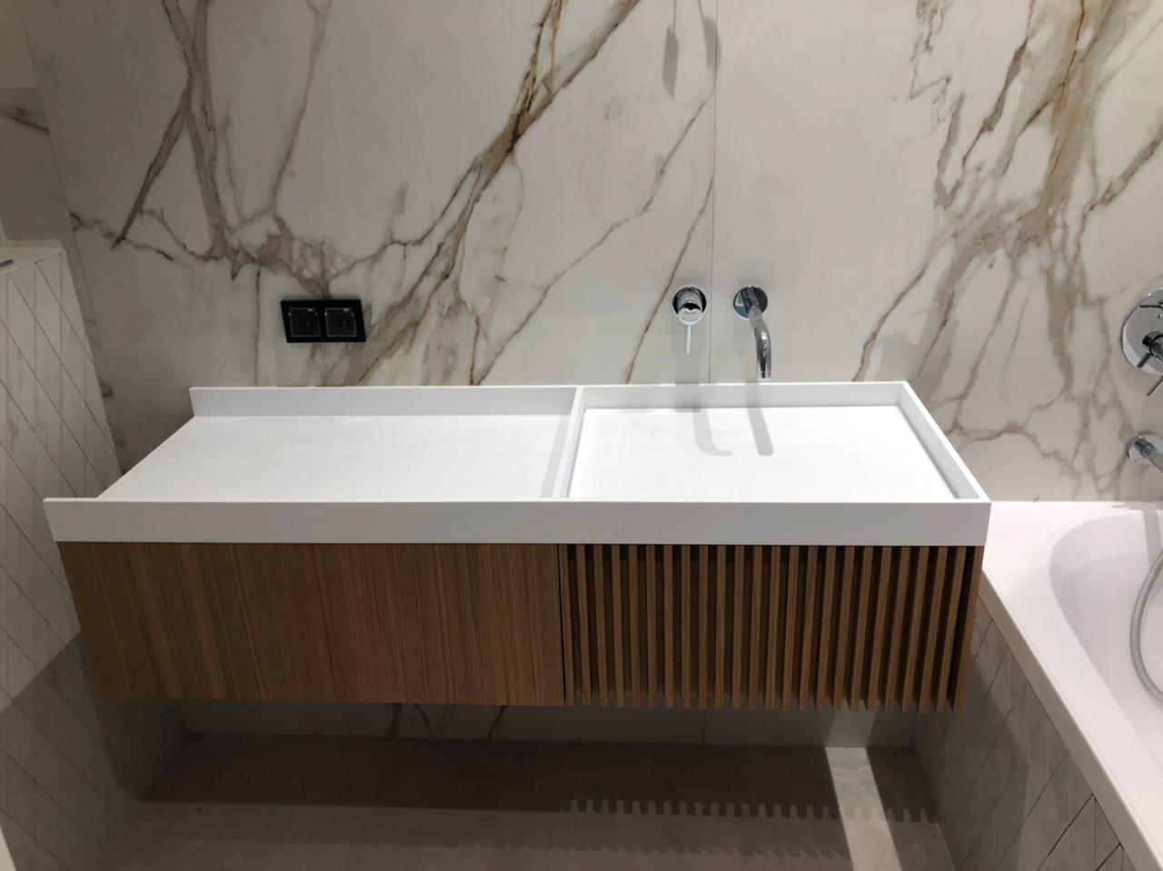 Столешница из искусственного акрилового камня с интегрированной раковиной «Slim » Полировка: глянцевая, полуглянцевая, матовая. Страна производитель Южная Корея.