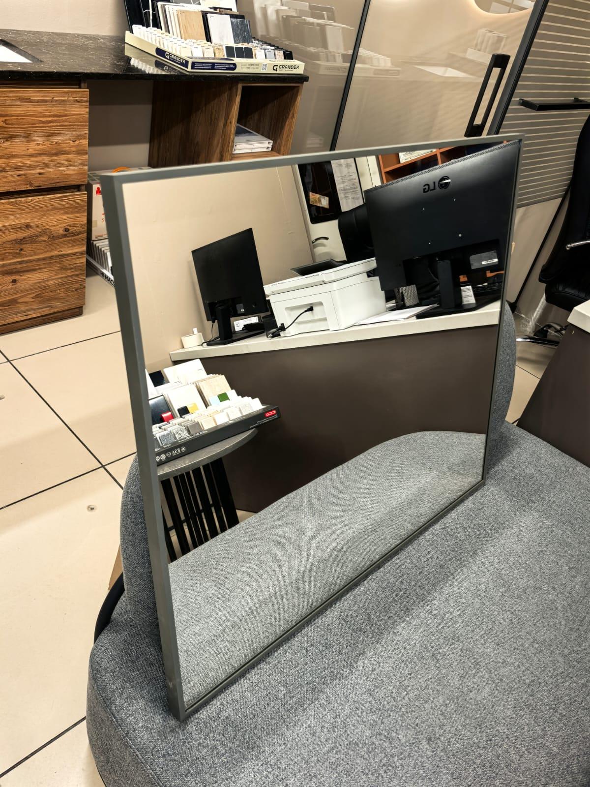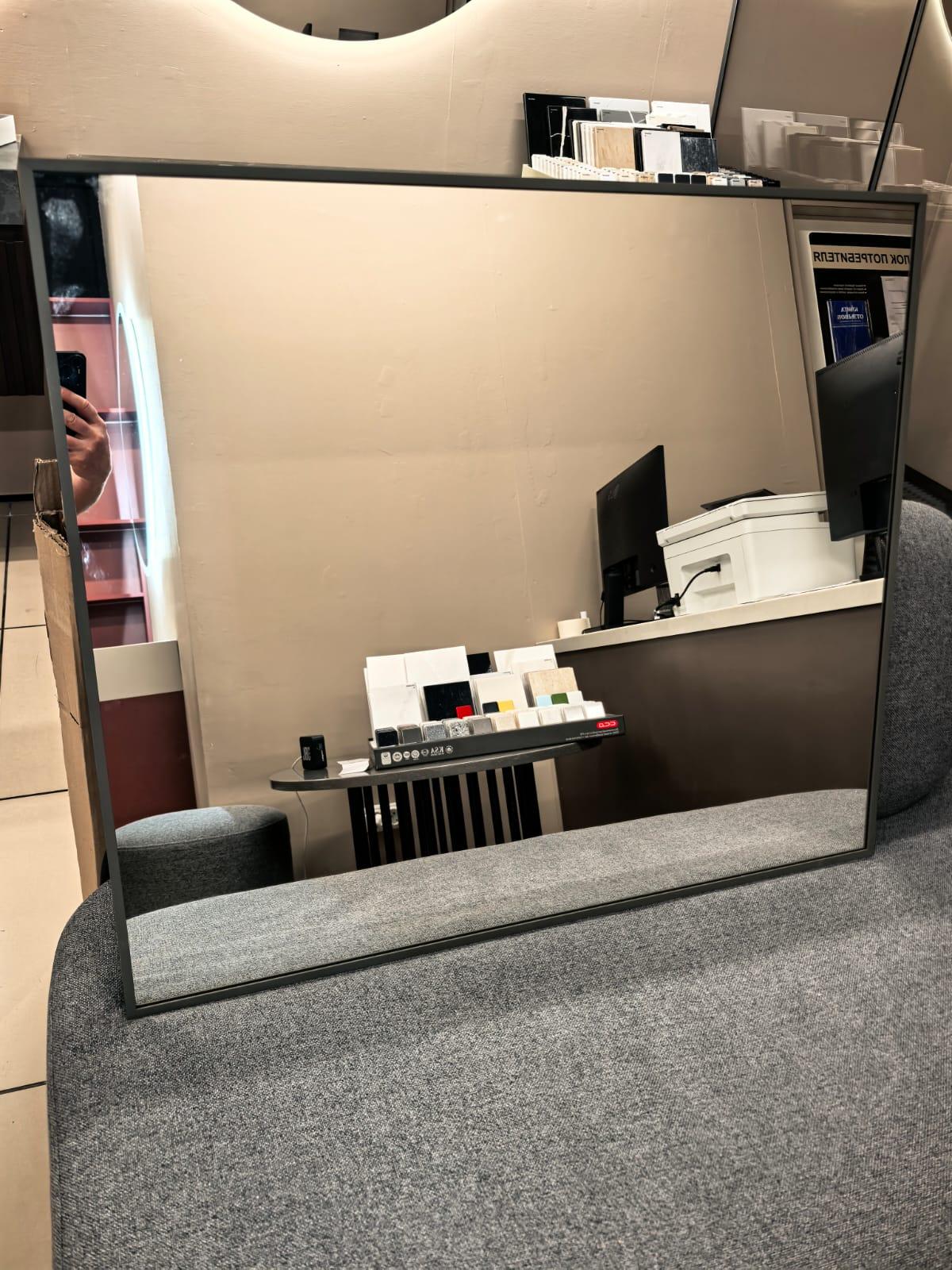 Зеркало в металлической раме, цвет графит. Подсветка 4000К нейтральная. Размер : (ш*в*г) 880*760*35 мм Включение тач + опция анти запотевания.