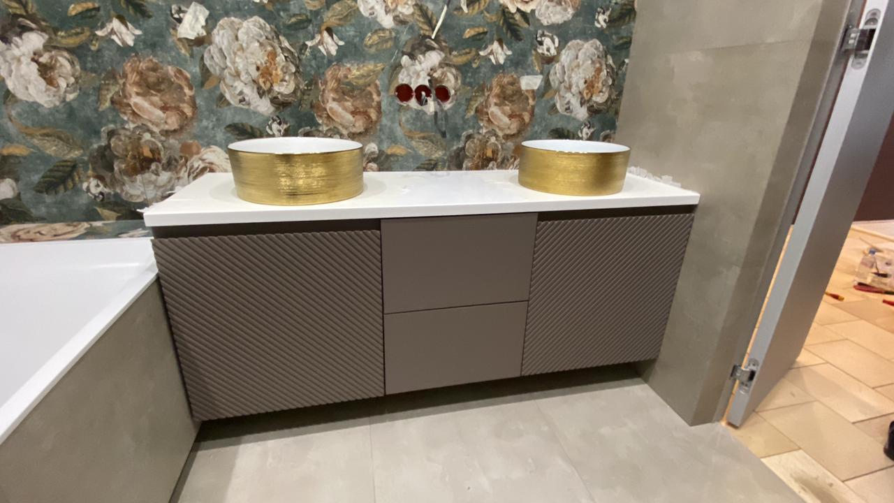 💎 *Тумба для ванной «Люкс-Графит» — где минимализм встречается с роскошью* 💎 Хотите превратить свою ванную комнату в пространство из журнала? Эта тумба — ваш главный инструмент! ## ✅ Почему выбирают именно её: 🔹 *Стильный графитовый цвет* — глубокий, современный, не выйдет из моды. 🔹 *Текстурированные фасады* — диагональные линии создают эффект объёма и движения. Никакой скучной плоскости! 🔹 *Без ручек — только элегантность* — два вместительных ящика с системой push-to-open (или скрытыми выемками). Чистые линии и максимум комфорта. 🔹 *Белая столешница из искусственного камня* — матовая, прочная, устойчивая к влаге и царапинам. Идеальная основа для вашего стиля. 🔹 *Золотые раковины — вау-эффект гарантирован!* 💛 Настольные, округлые, с белым внутренним покрытием — они не просто функциональны, они — украшение интерьера. ## 🛋️ Подойдёт для: ✔ Современных интерьеров ✔ Скандинавского стиля ✔ Эклектики и лофт-дизайна ✔ Кто ценит сочетание практичности и роскоши --- 🎁 *Почему сейчас — лучшее время заказать?* → Уникальный дизайн, который вы не найдёте в каждом магазине. → Высокое качество материалов — служит годами. → Визуальный акцент, который преобразит любую ванную. → Быстрая сборка и удобная доставка по всей стране. --- 🔥 *Ограниченное количество!* Не упустите шанс обновить ванную — с комфортом, стилем и без лишних слов. 👉 *Добавьте в корзину прямо сейчас — и пусть ваша ванная станет местом, куда хочется возвращаться снова и снова.*