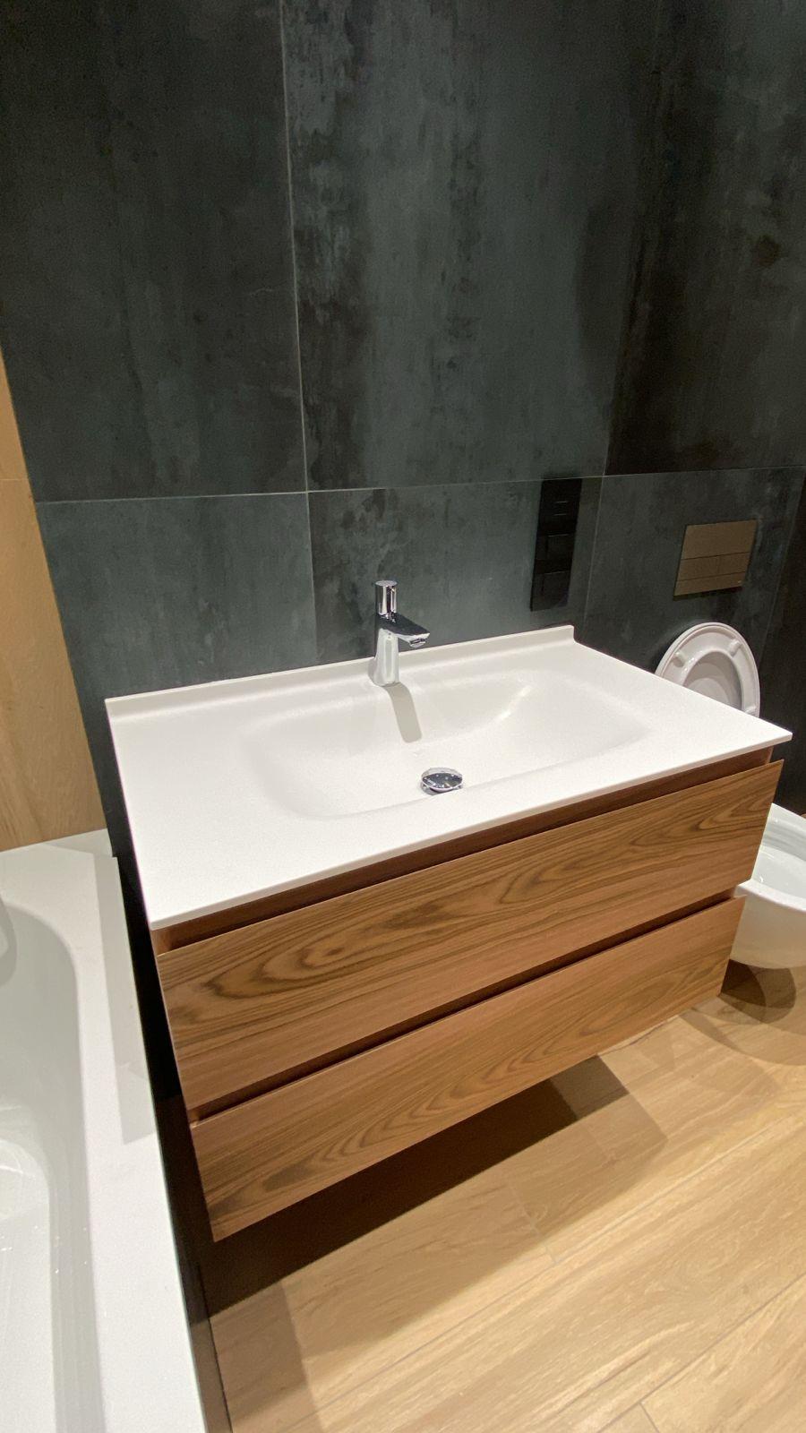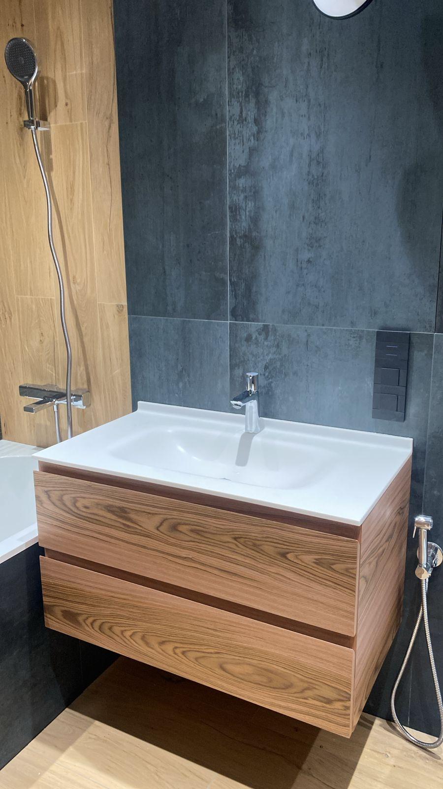 Подвесная тумба под раковину «Орех» 🌰 — стиль, функция, натуральность* Создайте в вашей ванной комнате атмосферу уюта и современного комфорта 🛁✨ с нашей подвесной тумбой. Её главный акцент — благородная текстура *шпона ореха* 🌳, которая придает интерьеру теплоту, глубину и элегантную роскошь. *Почему выбирают эту тумбу:* ✅ *Натуральный шпон ореха* 🌰 — высококачественное покрытие с четко выраженной древесной текстурой. Это не просто отделка — это заявление о вкусе. Текстура выглядит живой, тёплой и роскошной! ✅ *Максимальная функциональность* 🗃 — два вместительных выдвижных ящика с плавным ходом и доводчиками. Внутренняя отделка — черная, стильный контраст с деревом. ✅ *Современный дизайн* ✨ — подвесная конструкция визуально расширяет пространство. Лаконичные фасады без ручек (открываются нажатием) — чистый минимализм и легкость в уходе. ✅ *Готовое решение* 🚿 — в комплекте: белая раковина из искусственного камня + стильный хромированный смеситель. Установили — и наслаждайтесь! 👉 «Мебельванная.рф» — мебель, которая работает на ваш комфорт.